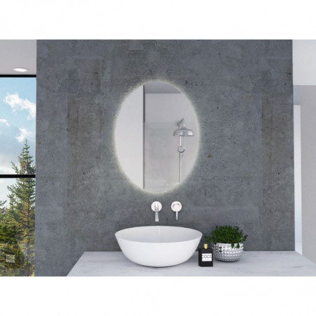 Espejo sencillo ovalado, con luz led, ensamble a la pared con chaflan. Incluye herrajes para su instalación.