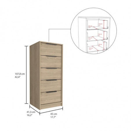 Elaborado en Madera aglomerada MDP, recubierta con láminas melamínicas de excelente calidad, en color Beige y Blanco.