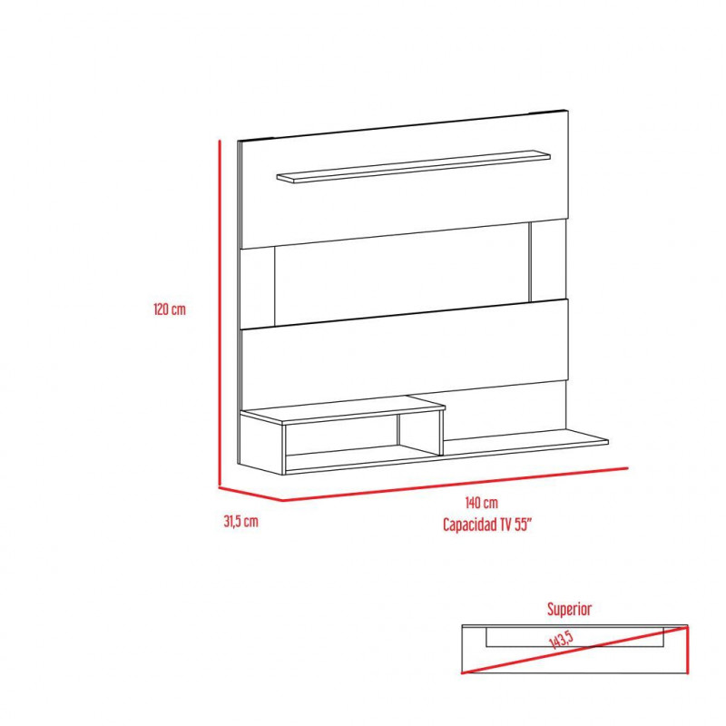 Panel para TV, múltiples entrepaños y superficies para ubicar objetos