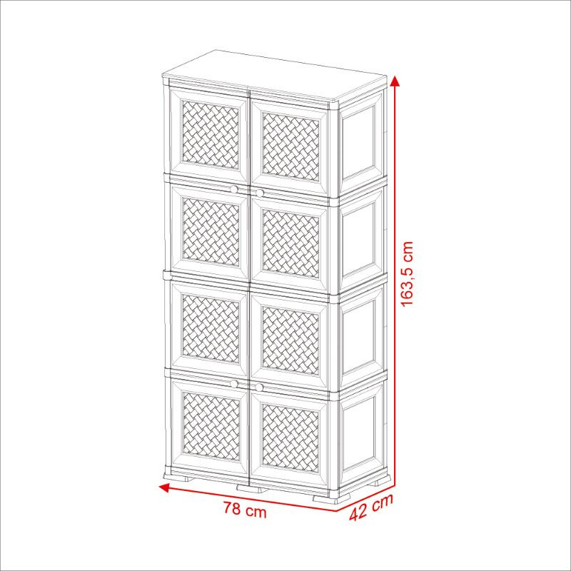 Mueble Organizador, con 4 puertas y 8 estantes.