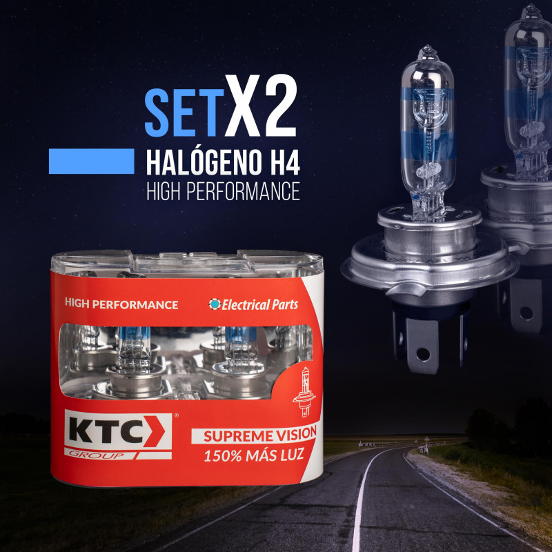 Pensando en tu seguridad y en mejorar la visibilidad en carretera, KTC ha desarrollado el bombillo halógeno H4, que genera 150% más luz.