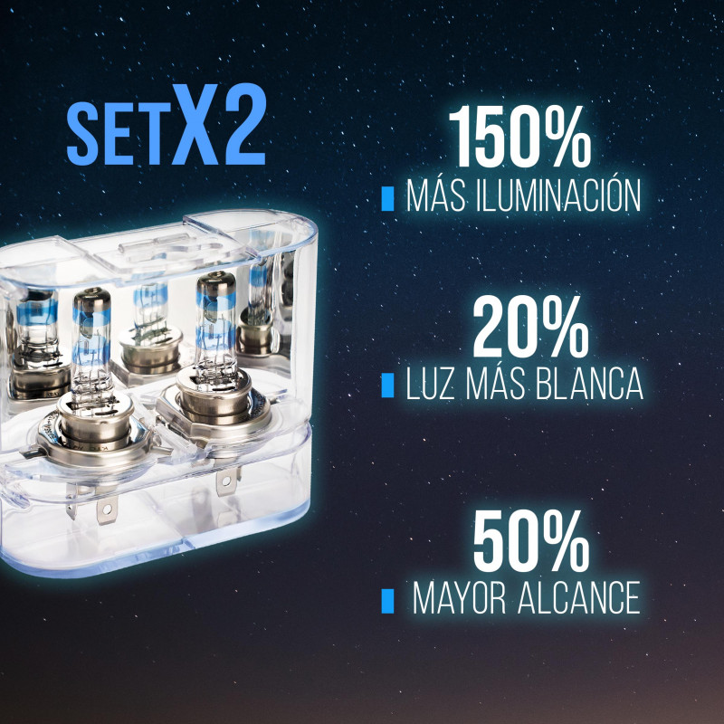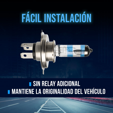 Bombillo halógeno H4, 150% más luz.