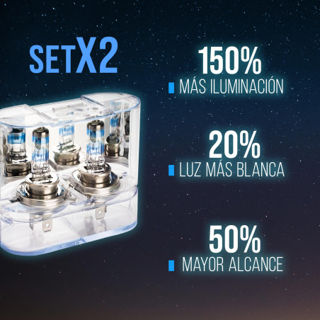 Foco halógeno para auto con un haz de luz de 50 metros más de alcance.