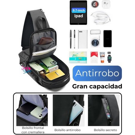 Bolso De Seguridad Canguro Antirrobo Carga USB Impermeable