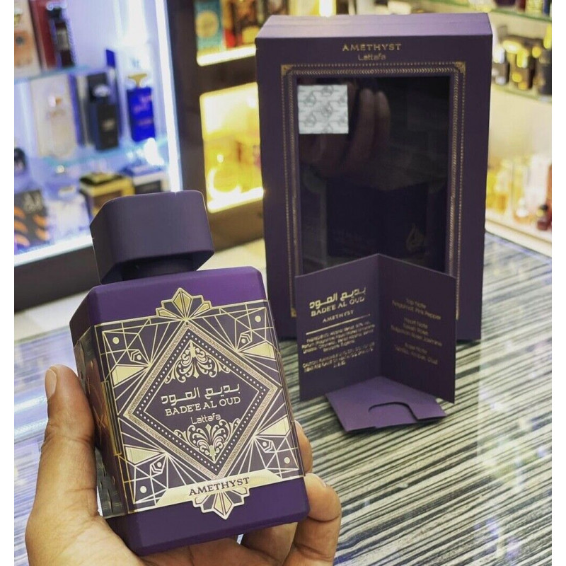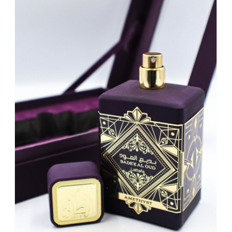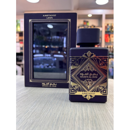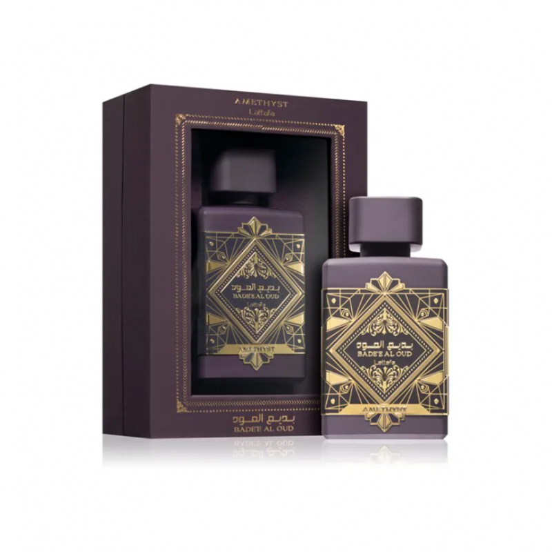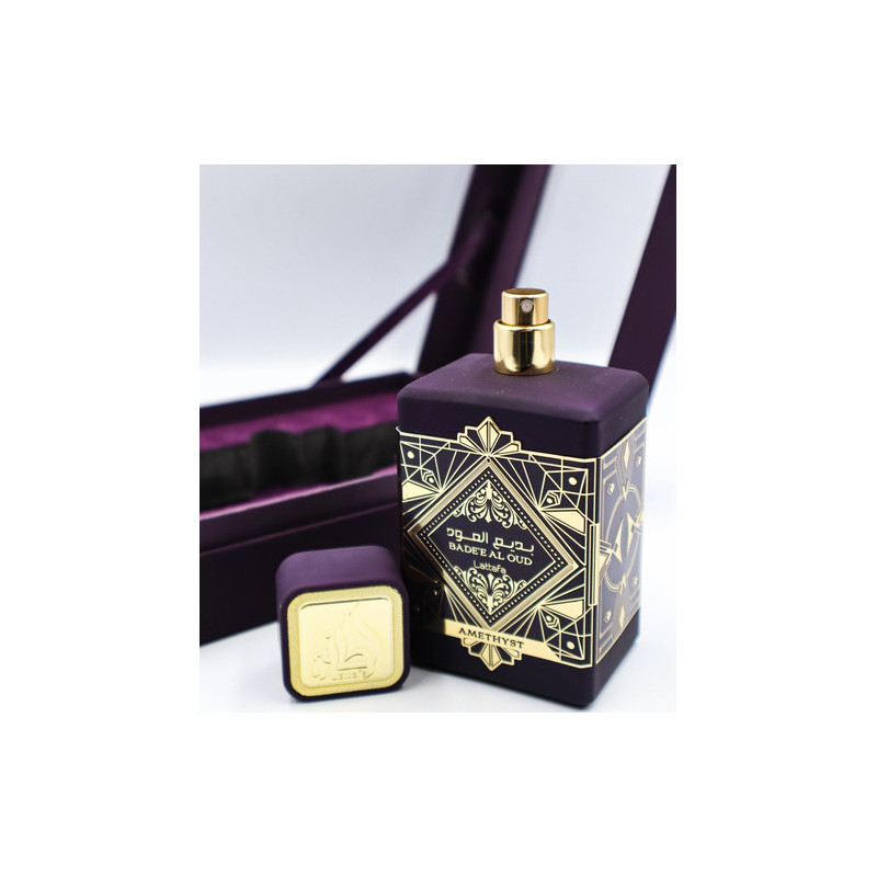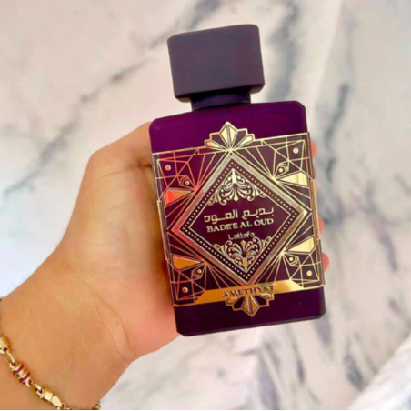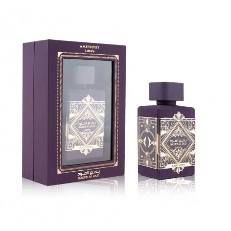 Bade'e Al Oud Amethyst de Lattafa es una fragancia de la familia olfativa Ámbar Vainilla para Hombres y Mujeres. Esta fragrancia es nueva. Bade'e Al Oud Amethyst se lanzó en 2021. Las Notas de Salida son bergamota, pimienta rosa, grosella negra; las Notas de Corazón son peonía, caramelo, madera de oud; las Notas de Fondo son frambuesa, pachulí, ámbar seco.