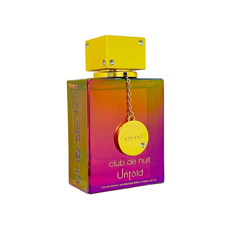 Club de Nuit Untold de Armaf es una fragancia de la familia olfativa para Hombres y Mujeres. Esta fragrancia es nueva. Club de Nuit Untold se lanzó en 2022. Las Notas de Salida son azafrán y jazmín; las Notas de Corazón son Amberwood y ámbar gris; las Notas de Fondo son resina de abeto y cedro.