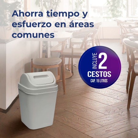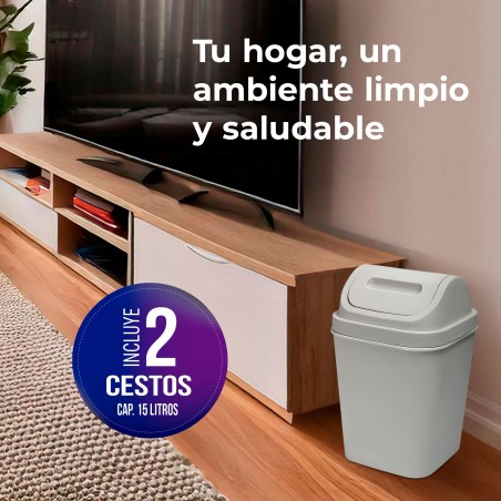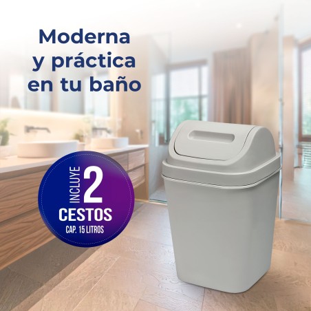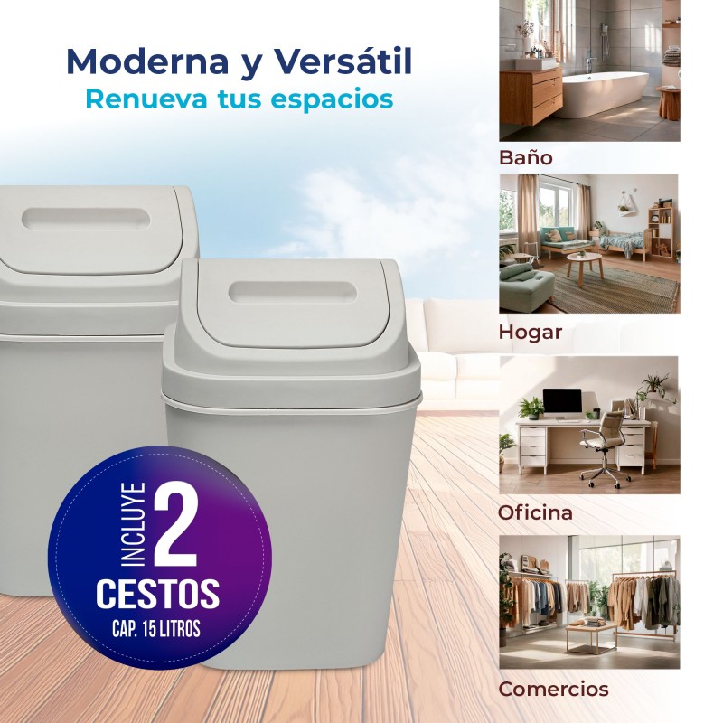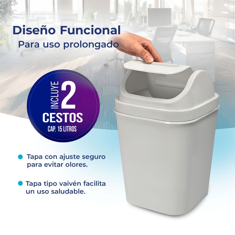 ¡Organiza tu espacio de forma eficiente y con estilo con el Cesto de Basura 15L con Tapa Vaivén! Este práctico y moderno basurero es ideal para cualquier lugar de tu hogar u oficina, ya sea la cocina, el baño o el área de trabajo. Su tapa vaivén facilita el uso y ayuda a mantener los olores contenidos, mientras que su diseño elegante se adapta a cualquier decoración. Además, está fabricado en Polipropileno 100% Original, garantizando durabilidad y resistencia.