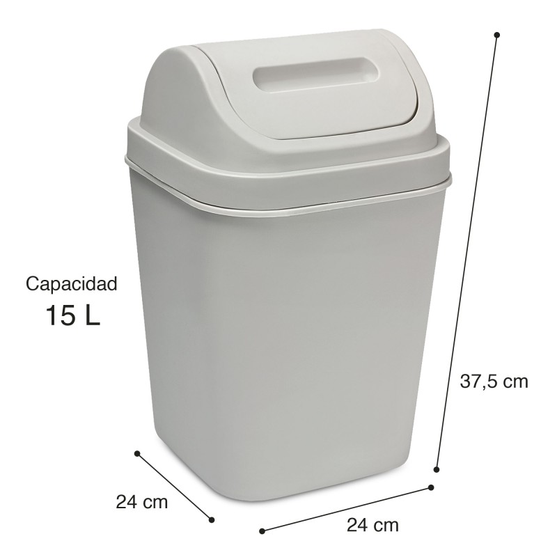 Cesto de Basura 15L con Tapa Vaivén - Caneca Plástica para Hogar y Oficina
