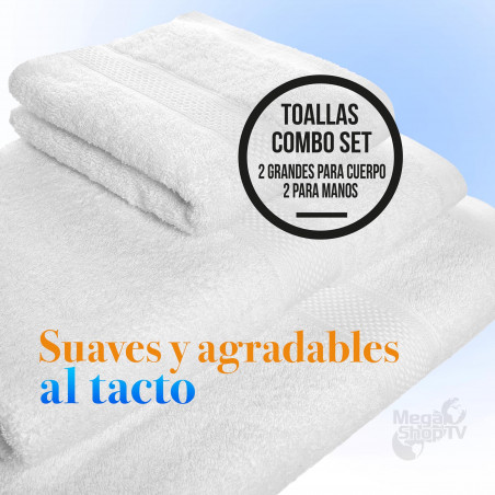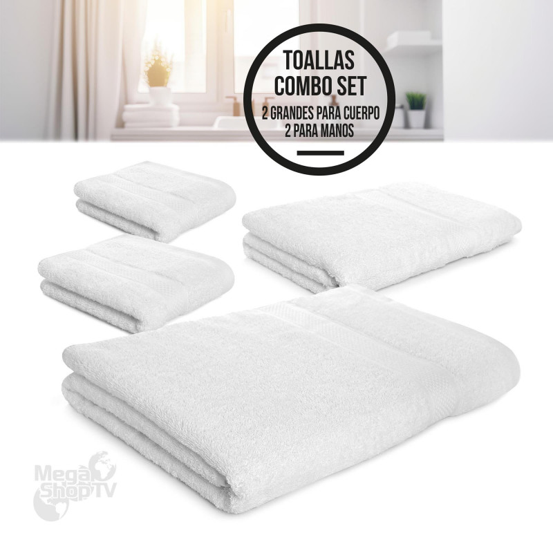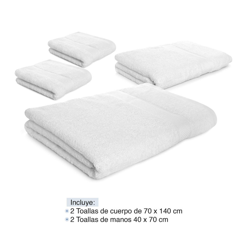 Set X4 toallas hoteleras: 2 toallas de cuerpo +2 de manos Blanca