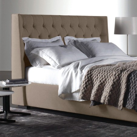 El espaldar está construido con paneles cosidos a mano individualmente, también está generosamente acolchado con espumas de alta densidad, lo que permite versatilidad en la ubicación de la habitación. El espaldar es una pieza de gran tamaño que no se puede desmontar. Recomendamos medir las entradas y los pasillos para garantizar un espacio libre, adecuado para la entrega.