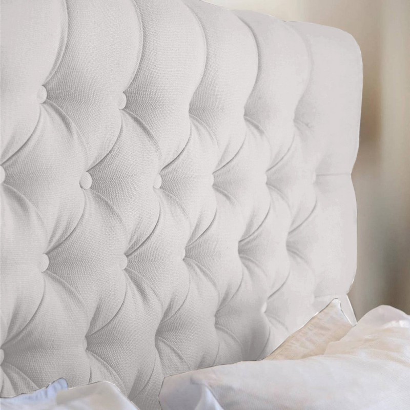 El espaldar está construido con paneles cosidos a mano individualmente, también está generosamente acolchado con espumas de alta densidad, lo que permite versatilidad en la ubicación de la habitación. El espaldar es una pieza de gran tamaño que no se puede desmontar. Recomendamos medir las entradas y los pasillos para garantizar un espacio libre, adecuado para la entrega.
