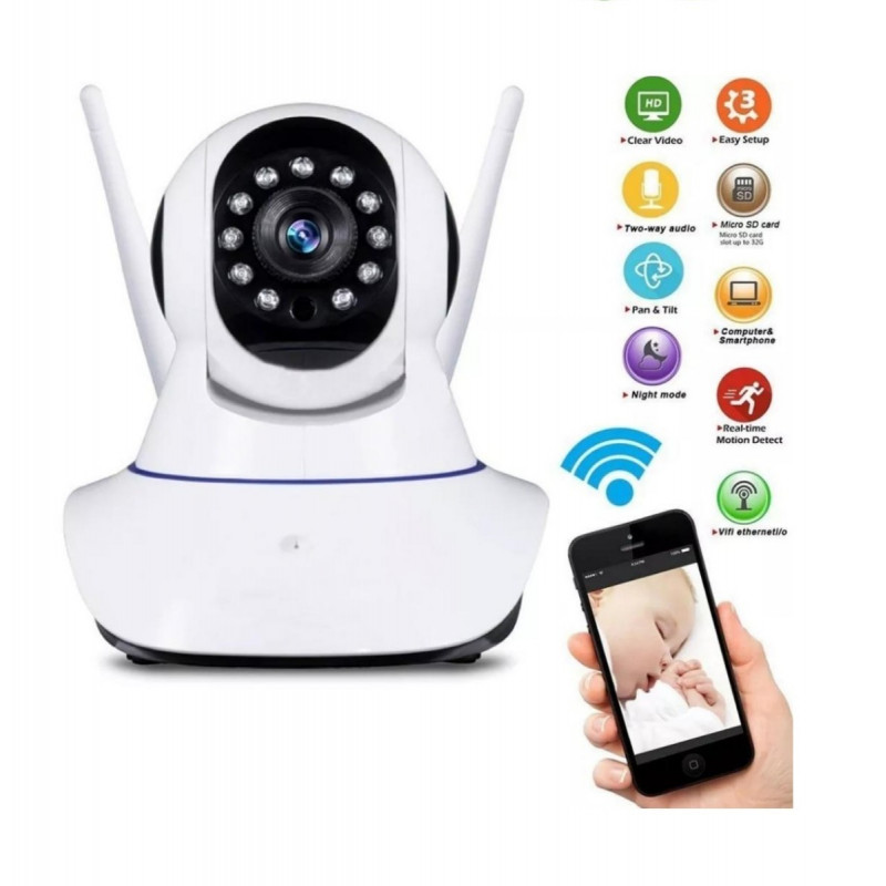 Cámara Wi-Fi de vigilancia IP doble antena, vigile y mantenga comunicación con lo que más quiere, desde su celular Tablet o computador, de manera fácil y económica, sin complicadas instalaciones y a bajos costos.