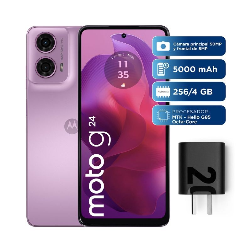 El moto g24 te ofrece el estilo y el desempeño que estabas buscando. Además del diseño sofisticado con materiales de primer nivel, el teléfono ofrece una mayor velocidad gracias a la Expansión de memoria y un procesador de alto desempeño.