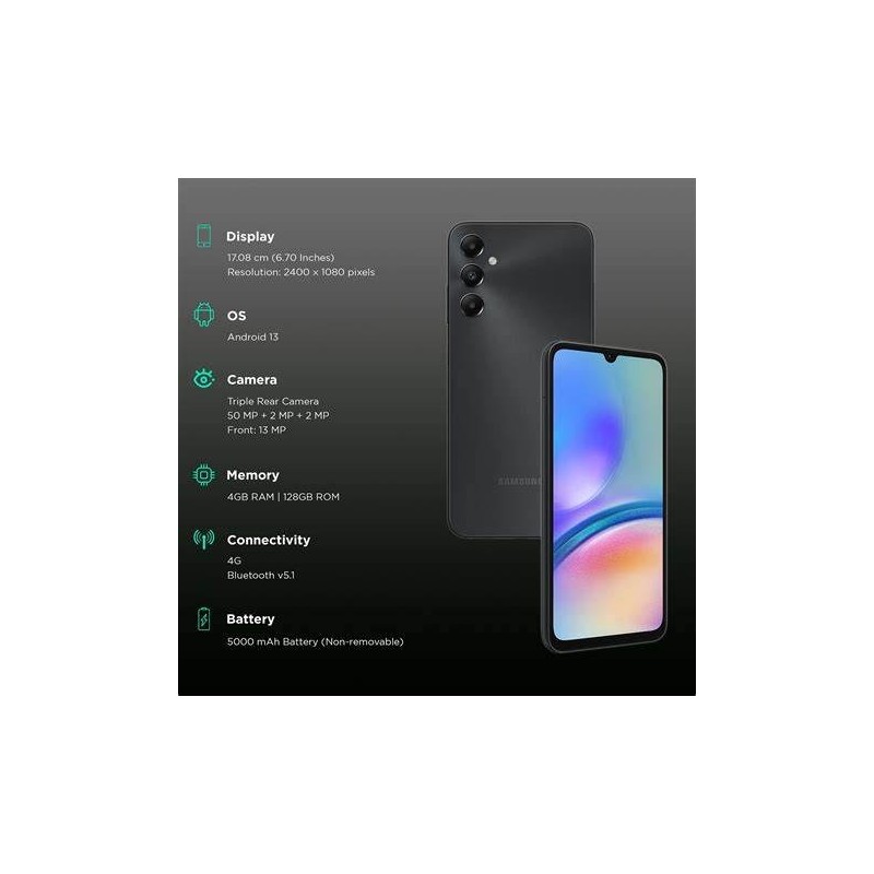 Conectividad y extras: Compatible con 4G LTE, Wi-Fi, Bluetooth 5.3, USB tipo C y conector de auriculares 3.5mm. Incluye lector de huellas lateral y corre bajo Android 13 con One UI Core 5.1.