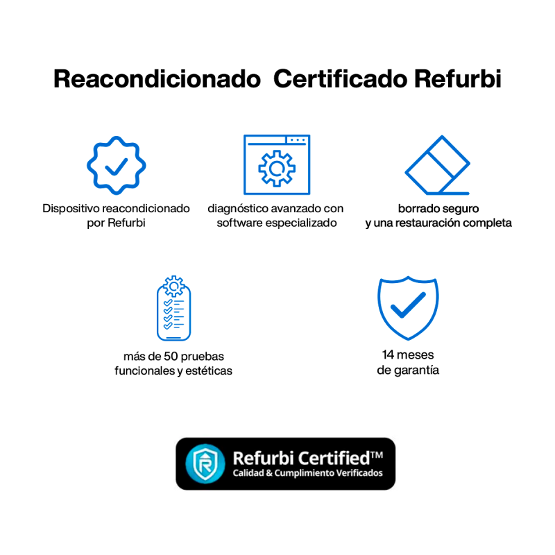 Equipo reacondicionado, probado y certificado. Compatible con cualquier operador. Incluye hasta 14 meses de garantía. Alternativa más económica y sostenible.