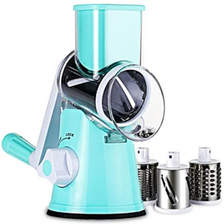 El rallador de tambor rotativo es una herramienta de cocina eficiente con 3 tambores de acero inoxidable para ayudarlo a preparar la ida rápidamente y en varios estilos sin problemas.