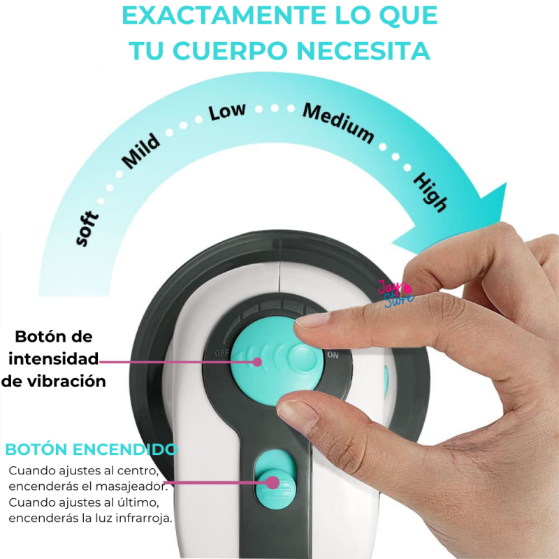 Herramienta poderosa para aliviar la tensión muscular y mejorar la circulación sanguínea. Con tecnología infrarroja que penetra profundamente en los tejidos, este masajeador proporciona un alivio efectivo para dolores y molestias.