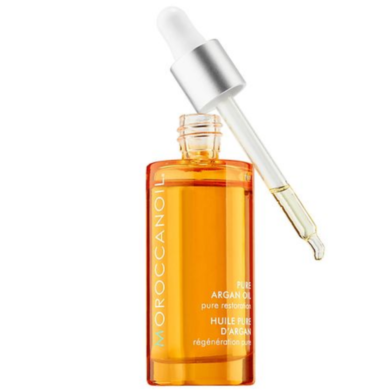 Pon unas gotas de Aceite de Argán Puro Moroccanoil® en las manos y masajea ligeramente el aceite sobre la cara, la piel exfoliada y las manos, luego pásalo por todo el cabello.