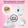Set x2 Espejos de Maquillaje LED Plegable, Aumento 10x y USB: Doble Precisión para Tu Belleza
