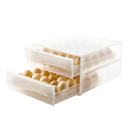 Diseño Perfecto: Con el diseño de dos cajones, el contenedor de almacenamiento es fácil de quitar. Nuestra bandeja para huevos es compacta y apilable, ahorra mucho espacio en el frigorífico y organiza tu frigorífico.