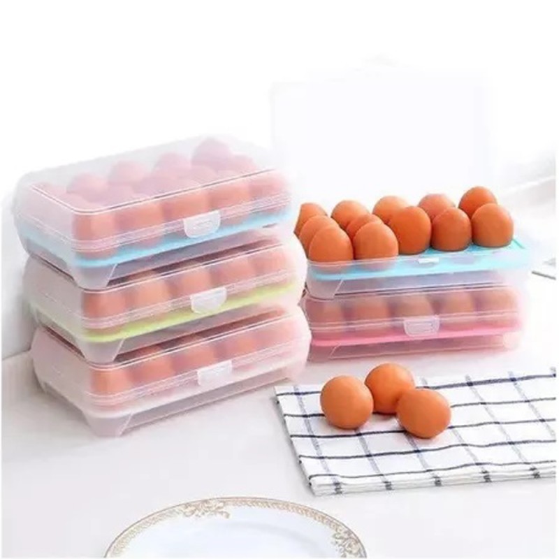 Diseño de 15 ranuras de cajas de huevo, adecuado para huevos desviados, fresas y otros alimentos. Bandeja para huevos con tapa, fácil de llevar.
