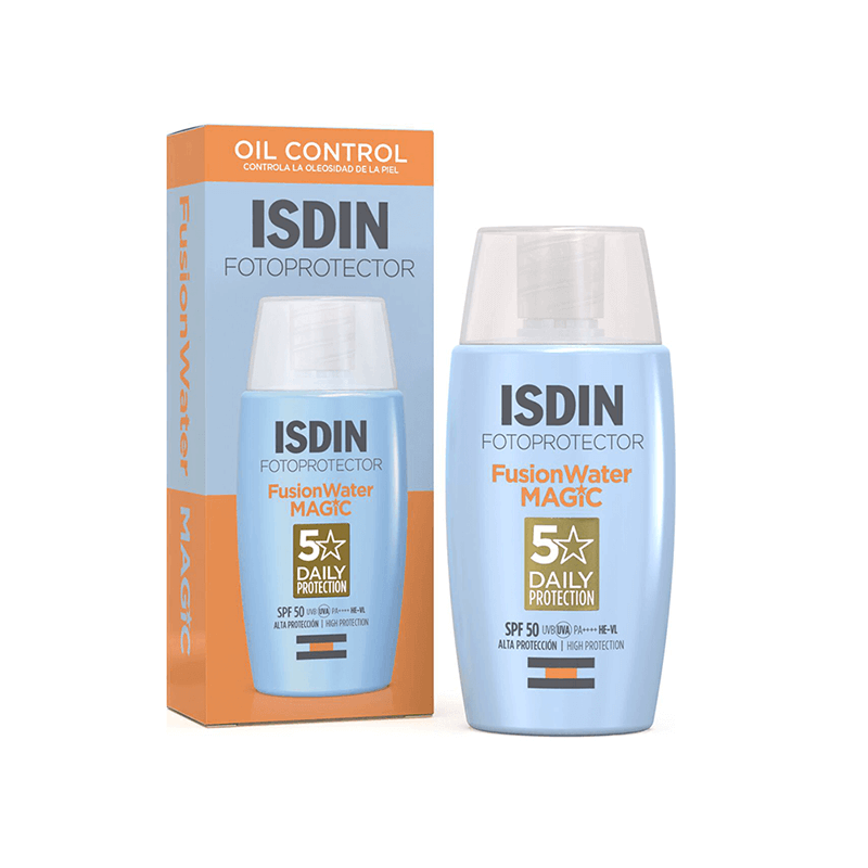 Fusion Water MAGIC SPF 50 es el protector solar ideal para actividades al aire libre con exposición prolongada al sol, gracias a su alta protección UV testada en condiciones reales de alta radiación solar. Su fórmula contiene extracto de alga mediterránea que ayuda a mantener la estructura celular de la piel y a estimular sus defensas naturales, ácido hialurónico que hidrata y aporta una acción de soporte a la piel, contribuyendo a reducir los signos visibles del envejecimiento y vitamina e que proporciona acción antioxidante, ayudando a prevenir el daño que los radicales libres ocasionan en la piel. Además, no irritan los ojos, es oil control y tiene una alta tolerabilidad en todo tipo de piel.