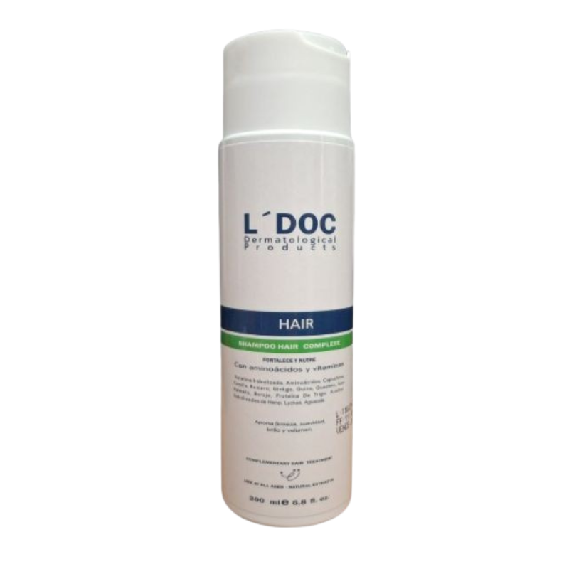 La Fórmula del Shampoo hair complete L ·Doc tiene componentes seleccionados por dermatólogo y farmacéuticos con experiencia, libre de sal, sin componentes derivadas del petróleo con extractos naturales de química verde, que limpian el cabello sin causar irritación, aportándole suavidad, brillo, sedosidad y frescura.