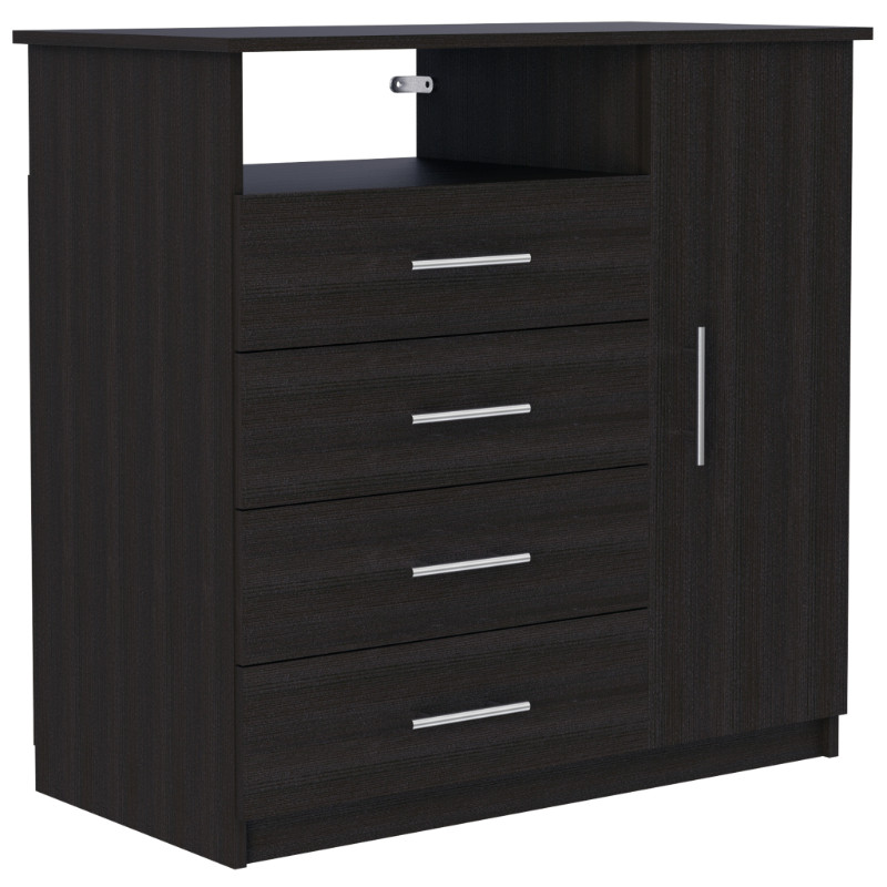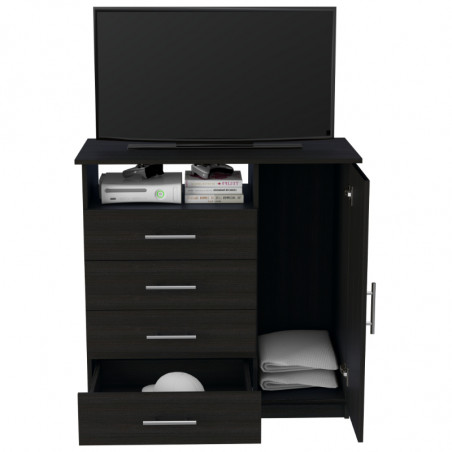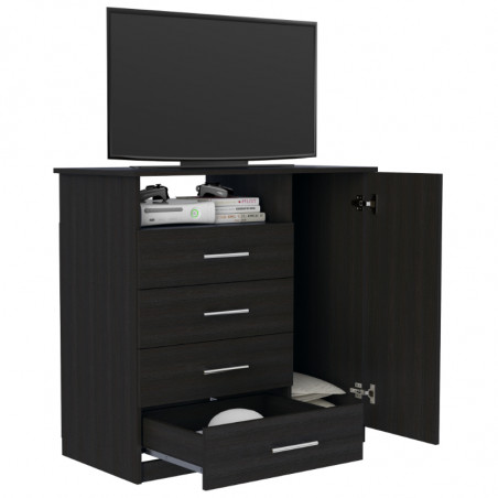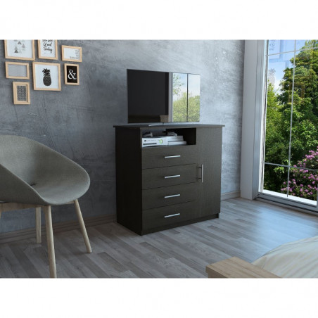 Elaborado en Madera aglomerada MDP, recubierta con láminas melamínicas de excelente calidad, en color Wengue.