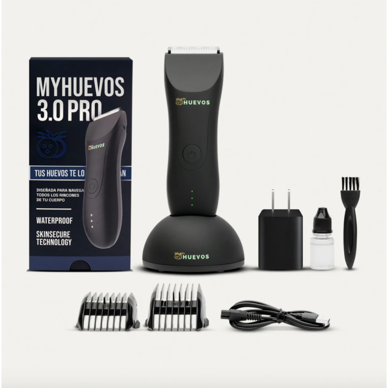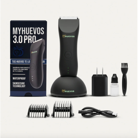 LA RASURADORA MASCULINA MyHUEVOS® 3.0 PRO es a prueba de agua para usar en la ducha mientras te bañas, posee una tecnología SKIN SECURE que cuida la piel, es inalámbrica, no tienes que preocuparte de que se acabe la batería ya que dura hasta 2 horas de uso continuo.