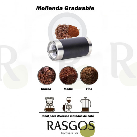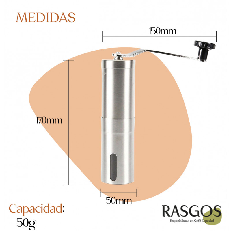Molino de acero inoxidable pensado en la practicidad y funcionalidad: ¡Todo lo que podríamos pedirla a un buen molino! Gran capacidad de molienda, con aspas cerámicas, por ende, no tendrás afectaciones del sabor o contaminación con elementos que afecten la pureza de tu café, además podrás graduar el nivel de molienda para tus métodos favoritos. El secreto de un buen café que debes saber Una molienda acorde. Moler el café justo antes de prepararlo nos garantiza la calidad de la bebida; Al tener un café de calidad es lógico que busquemos su máximo aprovechamiento, por tal razón te traemos un molino pensando en lograr una taza de calidad; Desde cafetera italiana moka o mini expreso, no importa, podrás ajustar la molienda para obtener justo la que deseas. Su sistema de molienda evita ese molesto sabor metálico presente en otros molinos. ¡Prepara tu café sin importar el dónde!