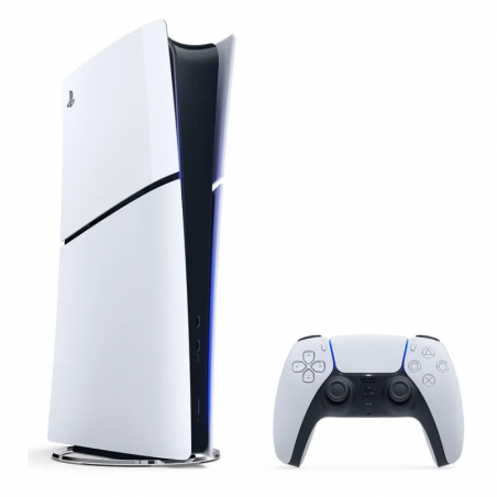 La PS5 Slim Digital es más compacta que la versión original, lo que la hace ideal para cualquier espacio de juego. Su diseño elegante en blanco mate y su estructura ligera la convierten en un verdadero centro de entretenimiento. Al no tener unidad de disco, su enfoque es 100% digital, ideal para quienes compran sus juegos directamente desde la PlayStation Store.
