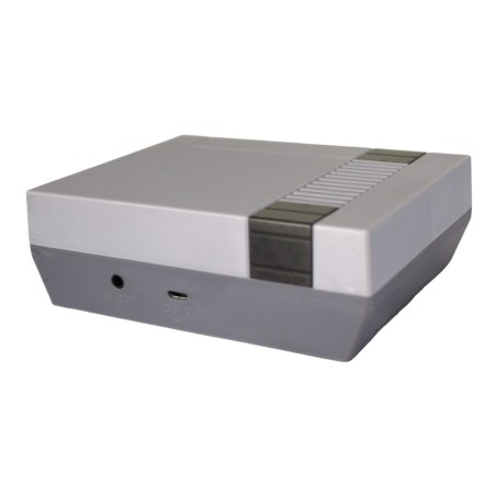 Consola de videojuegos retro con diseño compacto y portátil.