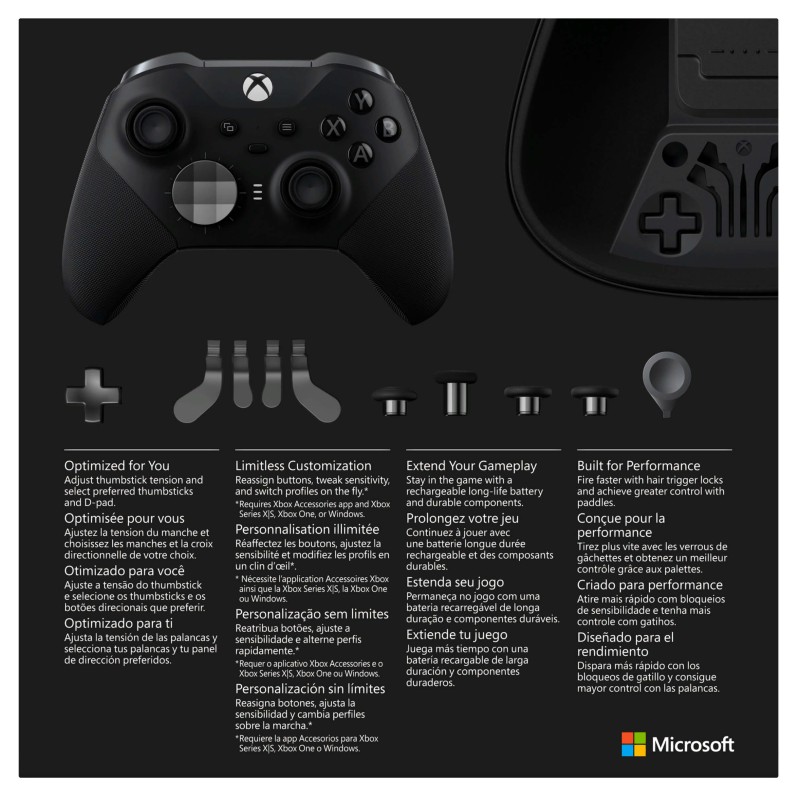 el control inalámbrico Xbox Elite Series 2 ofrece un desempeño excepcional, personalización y durabilidad donde más importa – en tus manos.