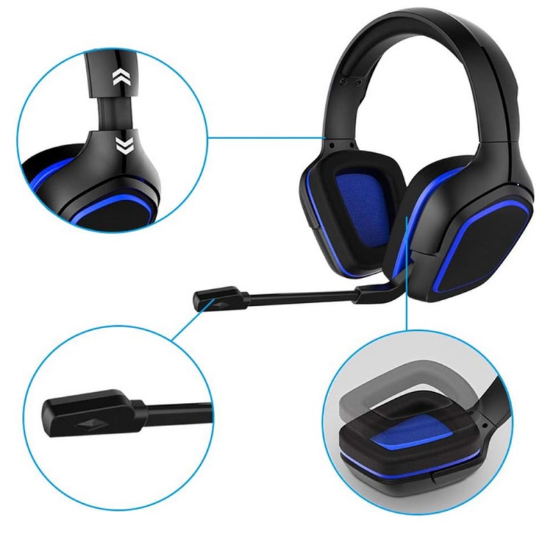 Audifonos Diadema Gamer Microfono Negro Azul Juegos Music Sonido