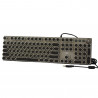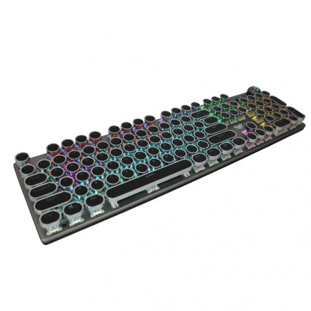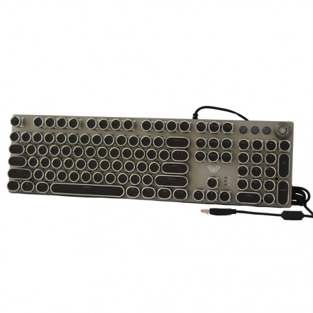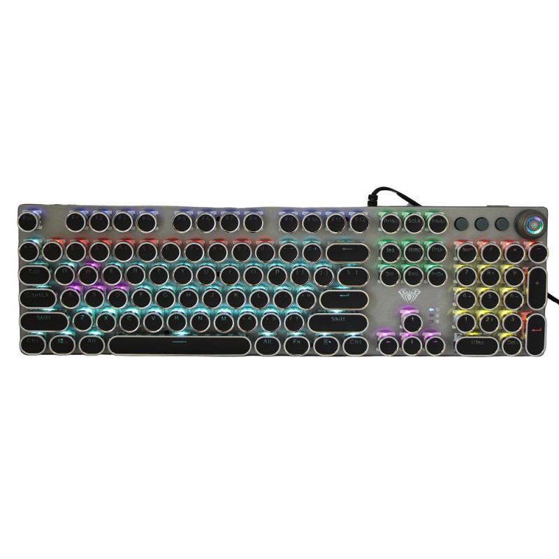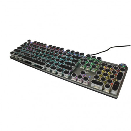Todas las teclas del teclado no tienen conflictos, teclado de juego de superficie de metal, por lo que todas las teclas funcionan al mismo tiempo en juegos intensos sin perder ninguna operación de teclas. Tecla ergonómica Arc, líneas suaves, sensación cómoda y antifatiga. Teclado retroiluminado perfecto para juegos y oficina. 2 pies angulares en la parte posterior del teclado pueden ajustar la altura del teclado, 2 soportes de goma para evitar que se resbale