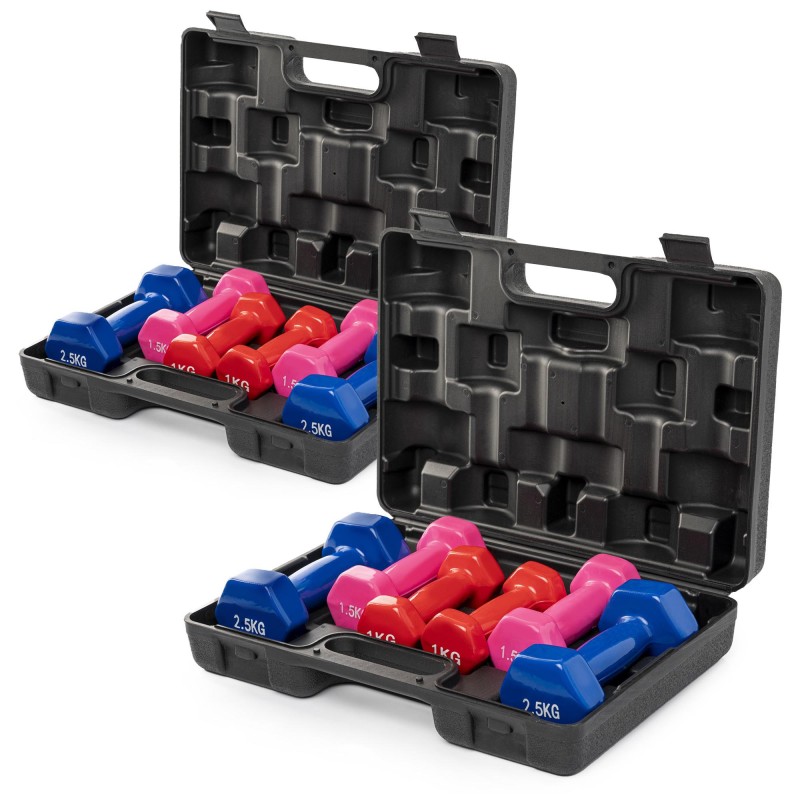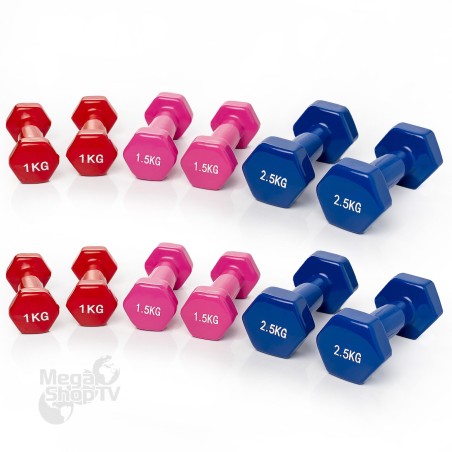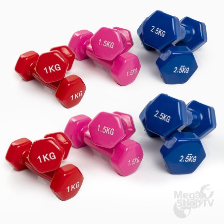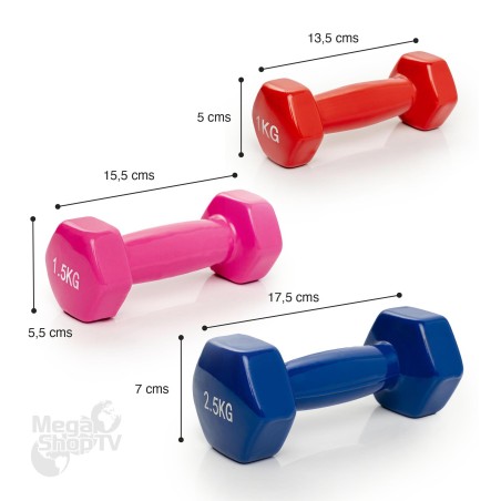 • Múltiples Pesos: Con mancuernas de 2.5 kg, 1.5 kg y 1 kg, este juego de mancuernas se adapta a todos los niveles de habilidad.