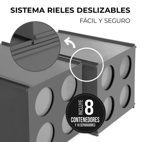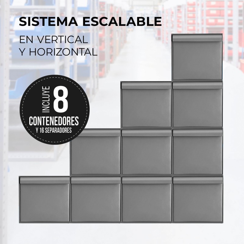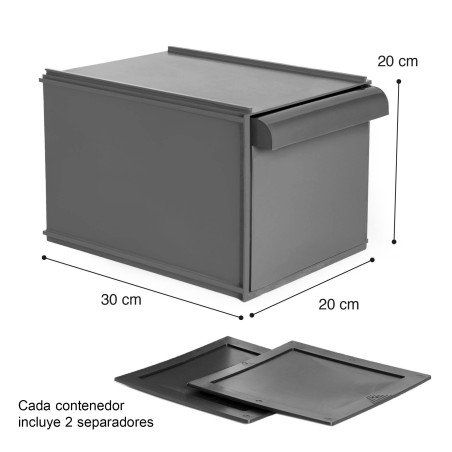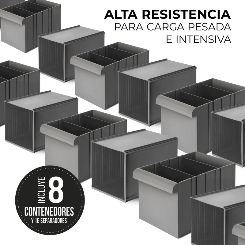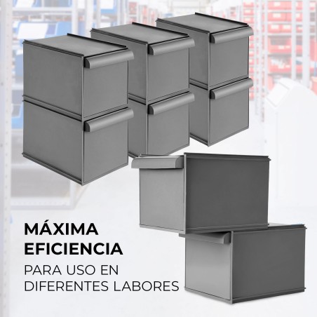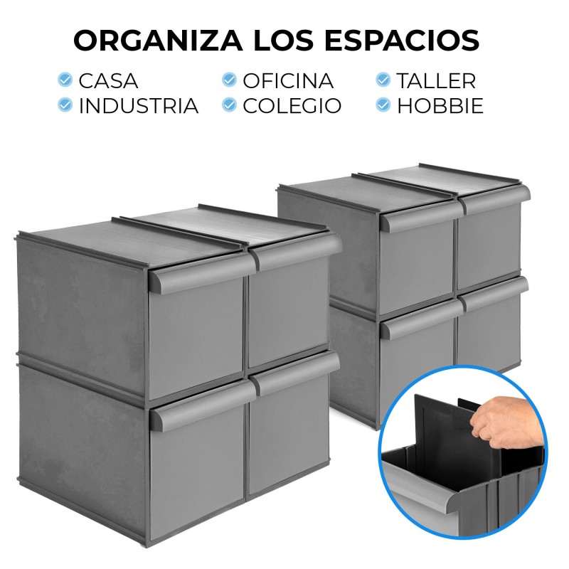 Revoluciona tu organización con nuestro set de 4 Cajones Organizadores de Herramientas Apilables y Modulares, cada uno diseñado para soportar hasta 25 Kg. Construidos con polipropileno para trabajo pesado, estos cajones ofrecen la combinación perfecta de durabilidad y eficiencia para cualquier entorno laboral. Con medidas de 30cm de largo, 20cm de ancho y 20cm de alto, están optimizados para manejar picking intensivo, grandes inventarios y cargas pesadas.Beneficios y Especificaciones:- Construcción Robusta: Hechos de polipropileno de alta resistencia.- Dimensiones Óptimas: 30cm x 20cm x 20cm, para una amplia gama de usos.- Gran Capacidad: Cada cajón soporta hasta 25 Kg.- Apilamiento Eficiente: Capacidad total de apilamiento de 250 Kg.- Flexibilidad: 2 divisiones removibles en cada cajón para una organización personalizada.- Multipropósito: Ideal para talleres, garajes y almacenamiento de herramientas.Este juego de 4 cajones plásticos apilables es la solución perfecta para quienes buscan mejorar la organización y accesibilidad de sus herramientas y materiales. Su diseño modular permite una personalización completa, adaptándose a las necesidades específicas de cada usuario.¡Mejora tu espacio ya! Adquiere este set de organizadores y transforma tu área de trabajo en un entorno más productivo y ordenado. Con una capacidad y versatilidad incomparables, son la inversión ideal para cualquier profesional. ¡Ordena ahora y eleva la eficiencia de tu espacio laboral al máximo!