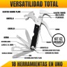 - 18 herramientas en 1: Combina martillo, alicates, sierra, destornilladores, cuchillo, pelacables y más en un diseño compacto.