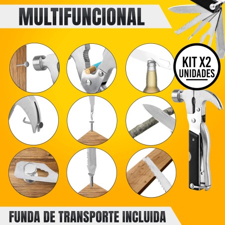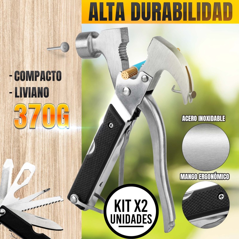 Set x2 Martillo Multifuncional 18 en 1 Herramienta Compacta y Versátil