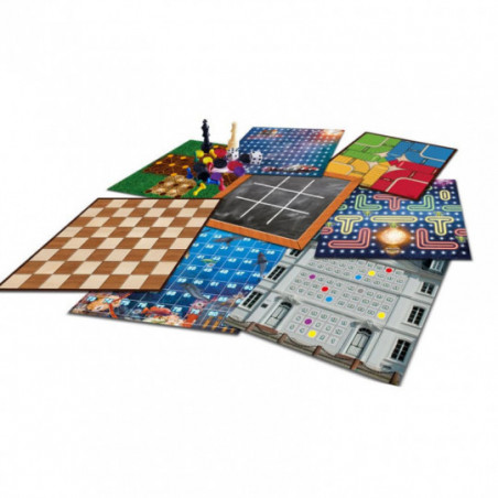 Divierte con los 30 mejores juegos que te harán vivir una inolvidable experiencia *Juegos con Tableros: Escalera Submarina, marcianos, la construcción, parqués, conquista espacial, cinco en fila, los gatos y el ratón, triki, zorros y gallinas, damas, damas italianas, damas devoradoras, dama esquinera, damas orientales, damas triangulares, el lobo y las oveja, ajedrez. * Juegos de Naipes: Trampa, Mau_mau, corazones, encarte, veintiuna, nervioso, perro, póker tradicional, castillo de naipes, cinco vías. *Juego de Dados: Gallina Ciega, Carrera de Pares, Trébol *Diversión *Juego de mesa *Familia *Distracción *Amigos *Multijuegos Contenido del producto : * 8 Tableros de juego * 1 Baraja de cartas * 32 Fichas de ajedrez * 16 Fichas de mini parqués * 2 Fichas redondas moradas * 20 Fichas redondas amarillas * 2 Dados * 24 Fichas de damas * Instrucciones Edad minima recomendada : 8 + Cantidad de jugadores : 3 +