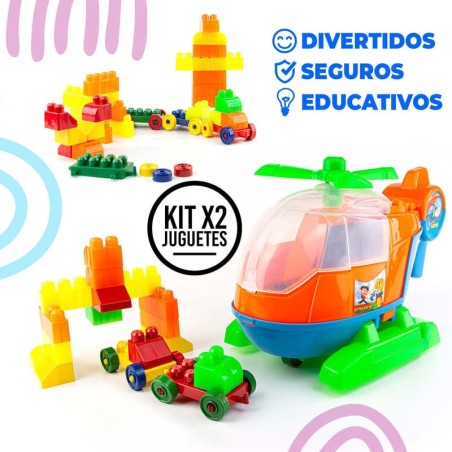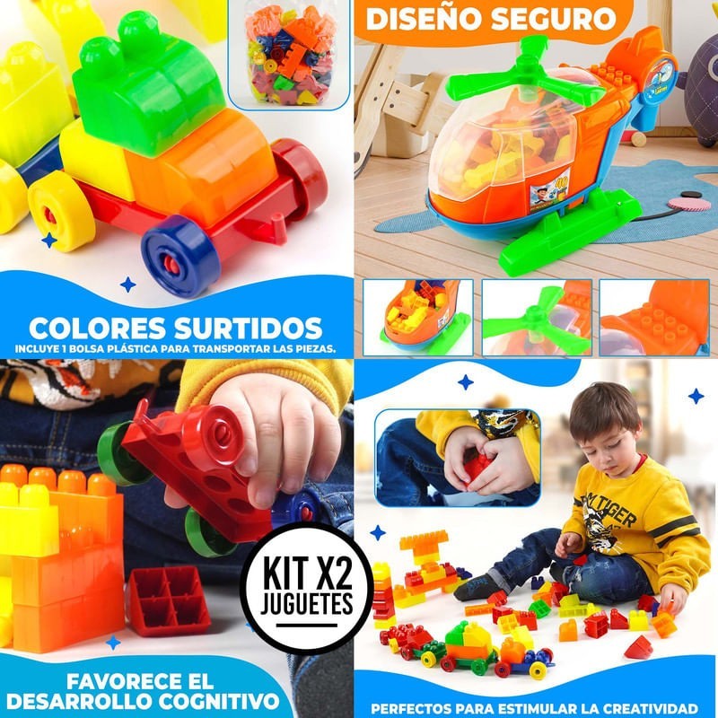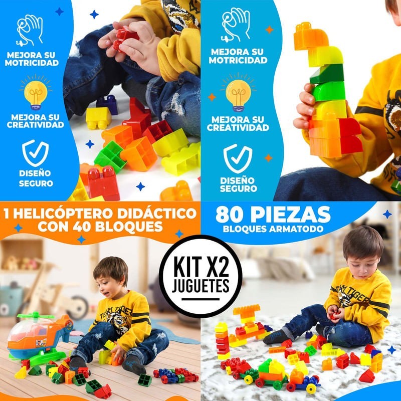 Impulsa la imaginación y el aprendizaje de tus hijos con nuestro Set Didáctico para Niños: Mega Bloks x80 Piezas + Helicóptero Didáctico, diseñado para combinar diversión, creatividad y educación en un solo paquete. Este combo ofrece una experiencia de juego única, permitiendo a los niños explorar su creatividad mientras desarrollan habilidades cognitivas y motoras importantes. Incluido en este Set: - Mega Bloks x80 Piezas: Fomenta la construcción creativa, 29x22x15 cm, 0.36 kg. - Helicóptero Didáctico: Introduce el juego interactivo, 22x37x20 cm, 0.75 kg. Beneficios: - Estimulación Creativa y Cognitiva: Con 120 piezas en total para ensamblar y crear. - Desarrollo de Habilidades Motoras: Mejora la coordinación a través del juego constructivo. - Práctico para Almacenar y Transportar: Fácil organización con bolsas incluidas. Fabricados en Polipropileno seguro, estos juguetes son perfectos para manos pequeñas, ofreciendo una solución duradera y segura para el juego diario. ¡Anima a tus hijos a descubrir el mundo del aprendizaje a través del juego con este set didáctico! Ideal para regalos, este combo promete horas de entretenimiento educativo y desarrollo de habilidades vitales. ¡No esperes más! Este set es el regalo ideal para impulsar la imaginación y el desarrollo infantil. Compra ahora y haz que el aprendizaje y la diversión despeguen juntos!