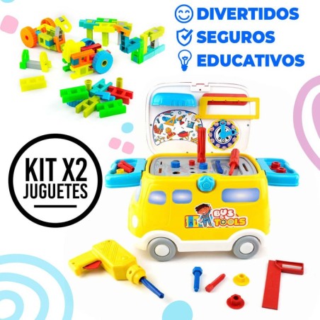 Kit Construcción 3D+ Autobús Herramientas: bloques de juego
