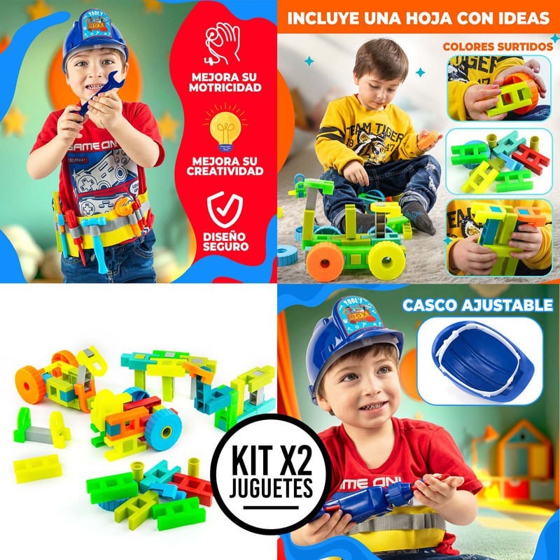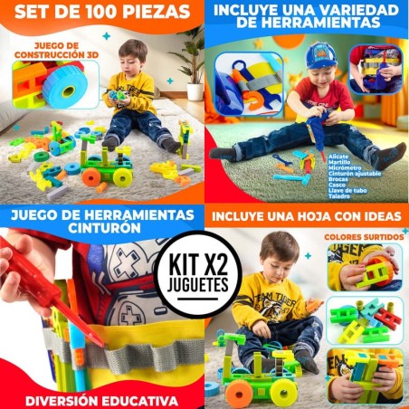 Explora el Kit Constructor 3D de 100 Piezas + Set de Herramientas con Cinturón, diseñado para inspirar la creatividad y el aprendizaje en los niños. Hecho de Polipropileno seguro, este combo es el regalo perfecto para futuros constructores y mecánicos, promoviendo horas de diversión educativa. El Kit Incluye: - Constructor 3D x100 Piezas: Para creatividad sin límites en construcciones 3D. - Set de Herramientas con Cinturón: Compuesto por herramientas de juguete esenciales para el aprendizaje práctico, que contiene: Alicate, martillo, micrómetro, todo en versión juguete, Cinturón ajustable, dos brocas, casco, llave de tubo y taladro de juguete. Beneficios: - Estimula Imaginación y Creatividad: Promueve la innovación y habilidades creativas. - Fomenta Desarrollo Cognitivo: Mejora la motricidad y resolución de problemas. - Introduce Aprendizaje Práctico: Enseña conceptos básicos de construcción y mecánica. Especificaciones: - Juego de Construcción 3D: 37x28x14 cm, 1.3 kg. - Set de Herramientas: Incluye 8 herramientas de juguete, 75x17x4 cm, 0.35 kg. Este combo no solo ofrece entretenimiento, sino también una valiosa herramienta educativa, permitiendo a los niños aprender de manera divertida. Perfecto para cualquier ocasión, este kit es el regalo ideal para desatar la creatividad y el interés por el aprendizaje en tus hijos. Adquiere ahora y ve cómo tus pequeños constructores y mecánicos desarrollan habilidades importantes mientras juegan.