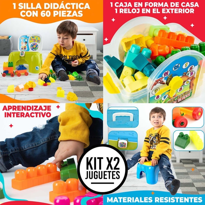 ¡Potencia la Imaginación y el Aprendizaje con nuestro combo Set Creativo 120 Piezas: Casa Didáctica + Silla Didáctica! Este innovador paquete combina el juego constructivo con el aprendizaje, ofreciendo 60 bloques para construir una Casa Didáctica y otros 60 para jugar con una Silla Didáctica. Fabricados en Polipropileno seguro, estos juguetes son perfectos para estimular el desarrollo cognitivo, la creatividad, y la resolución de problemas en los niños. ¿Qué trae este Kit? - Casa Didáctica de 60 Piezas: Para explorar la construcción y el aprendizaje espacial. - Silla Didáctica con 60 Bloques: Para un juego educativo y almacenamiento inteligente. Beneficios: - Estimula el Desarrollo Cognitivo y la Creatividad: A través del armado y el juego. - Fomenta el Aprendizaje Lúdico: Con bloques de construcción y actividades educativas. - Promueve la Resolución de Problemas: Desarrolla habilidades esenciales de manera divertida. - Soluciones Prácticas de Almacenamiento: Con diseños únicos que facilitan la organización. Especificaciones de cada Set: - Casa Didáctica: 60 bloques en colores surtidos, caja casa con reloj, 26x29x23 cm, 0.86 kg. - Silla Didáctica: 60 bloques, silla para almacenaje, 19x29x22 cm, 0.96 kg. ¡No dejes pasar la oportunidad de regalar este set educativo y creativo! Perfecto para niños curiosos y constructores en ciernes, este combo es el obsequio ideal para cualquier ocasión, promoviendo el juego interactivo y el desarrollo intelectual. Adquiere el Set Creativo 120 Piezas hoy y dale a tus hijos el regalo de la diversión educativa.