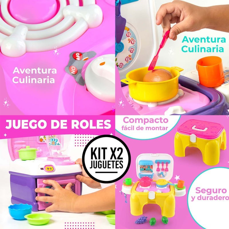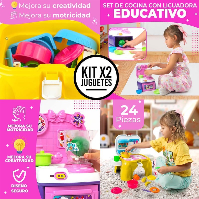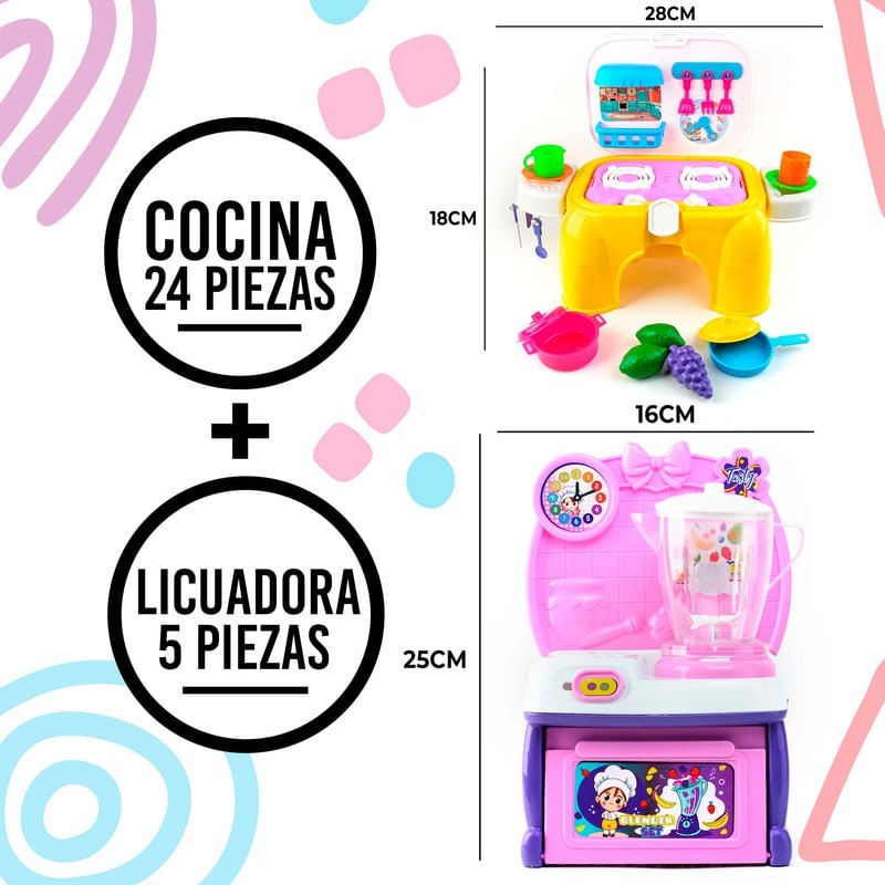 Desata la Creatividad Culinaria con nuestro combo Cocina + Licuadora Infantil: Diversión Culinaria Completa. Este set integral promueve el juego educativo y creativo, ideal para inspirar a los futuros chefs. Fabricado en Polipropileno seguro, incluye una cocina de juguete con 24 accesorios y una licuadora interactiva, ofreciendo una experiencia completa de cocina para niños. ¿Qué incluye este Combo? - Cocina de Juguete de 24 Piezas: Estimula la creatividad con accesorios variados. - Licuadora Interactiva: Complementa el juego con actividades culinarias interactivas. Beneficios: - Estimula la Creatividad e Imaginación: A través del juego de roles culinarios. - Desarrollo de Habilidades Motoras y Cognitivas: Mejora habilidades jugando. - Seguridad y Durabilidad: Confeccionado con materiales de alta calidad para uso seguro. - Fácil de Montar y Transportar: Diseño compacto con almacenamiento innovador. Especificaciones del Combo: - Cocina de Juguete: Incluye 24 accesorios, caja en forma de Silla, 18x28x23 cm, 1 kg. - Licuadora Interactiva: Set con licuadora y ollas, 29x18x14 cm, 0.65 kg. ¡No esperes más para brindar diversión y aprendizaje! Este combo es el regalo perfecto para los niños, ofreciendo horas de juego imaginativo y educativo. Adquiere hoy este set de cocina y licuadora infantil y observa cómo tus pequeños exploran el mundo de la cocina de manera divertida y segura.