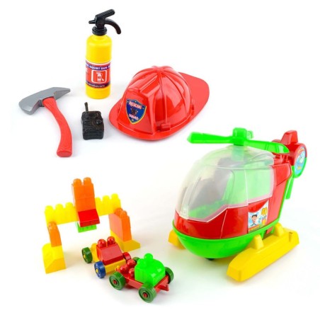 - Incluye Set de Bombero y Helicóptero Didáctico, fabricados en Polipropileno seguro y durable.