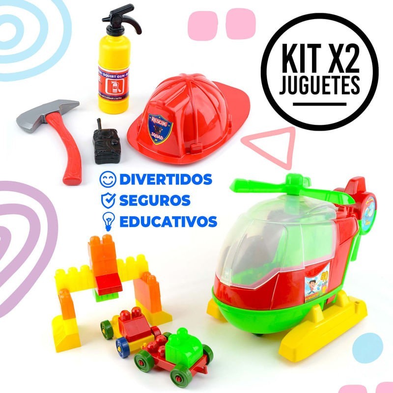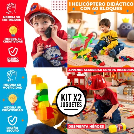 ¡Explora la emocionante diversión educativa con nuestro combo "Juego Rescate Aéreo: Set de Bomberos + Helicóptero infantil"! Este pack une el heroísmo y la innovación, permitiendo a los pequeños desplegar su imaginación en escenarios de rescate aéreo y terrestre. Fabricados en Polipropileno, estos juguetes son seguros, duraderos y promueven el aprendizaje lúdico. ¿Qué trae este Kit? - Set de Bombero: Despierta Héroes, Aprendizaje y Diversión: Fomenta la inteligencia emocional y la diversión con herramientas de bombero realistas. - Helicóptero Didáctico: Eleva el juego a nuevas alturas con este juguete creativo que estimula el desarrollo cognitivo y la motricidad. Beneficios: - Estimula la Creatividad e Inteligencia Emocional: A través del juego de roles y la construcción. - Desarrolla Habilidades Cognitivas y Motoras: Mejorando la coordinación y el aprendizaje práctico. - Fomenta el Juego en Familia: Creando momentos de unión y aprendizaje compartidos. Especificaciones de cada Set: - Set De Bombero: - Herramientas como extintor (22x6 cm), hacha (25x13 cm), casco (13x26 cm), y radio (13x45 cm). - Fabricado en Polipropileno seguro y durable. - Helicóptero Didáctico: - Contiene 40 piezas en forma de bloques armatodo. - Dimensiones: 22 cm de alto, 37 cm de largo, 20 cm de ancho; Peso: 0.75 kg. ¡No pierdas la oportunidad de adquirir este juego creativo y regalar experiencias de aprendizaje lúdico y desarrollo de habilidades a niños y niñas! Perfecto para regalar momentos de diversión y aprendizaje, este combo es ideal para inspirar a los futuros héroes y constructores.