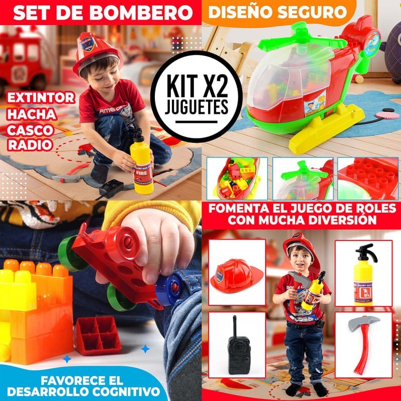 - Descubre el combo "Juego Rescate Aéreo: Set de Bomberos + Helicóptero infantil" para diversión educativa.