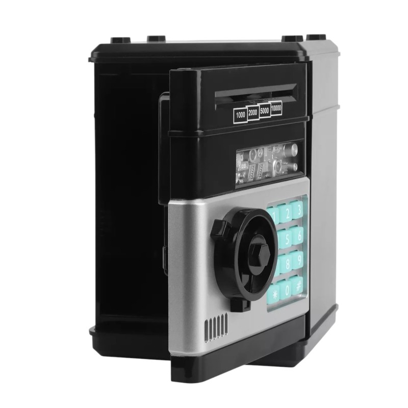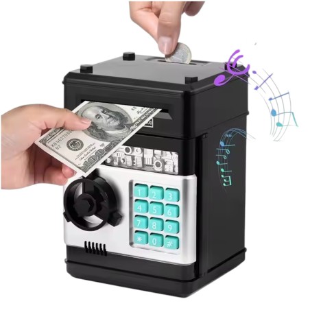 ¡Haz que ahorrar dinero sea divertido y seguro con esta increíble alcancía electrónica con clave! Diseñada para niños y adultos, esta alcancía digital simula una caja fuerte real, permitiéndote proteger tus ahorros de manera segura y entretenida. Con su función de ingreso de billetes automático y ranura para monedas, es ideal para fomentar la cultura del ahorro en los más pequeños y brindar un toque de seguridad adicional en casa.
