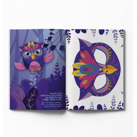 CUENTO CON MÁSCARAS SUEÑOS MÁGICOS Un niño nos lleva a través de las aventuras que vive en sus sueños, y nos permite hacerlas realidad con las máscaras que aparecen a medida que pasamos de aventura en aventura. Características 20 páginas Producto 100% ilustrado Idioma: español - inglés Edad: +3 Medidas: 30 x 23 cm Contiene 4 máscaras desprendibles